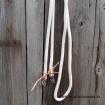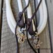 Otěže jsou zakončeny zpětným zápletem lana, tím vzniknou těžší konce, které jsou užitečným pomocníkem při jízdě na koni. Kožené koncovky na krabiny jsou vyrobeny ze silné pevné kůže.