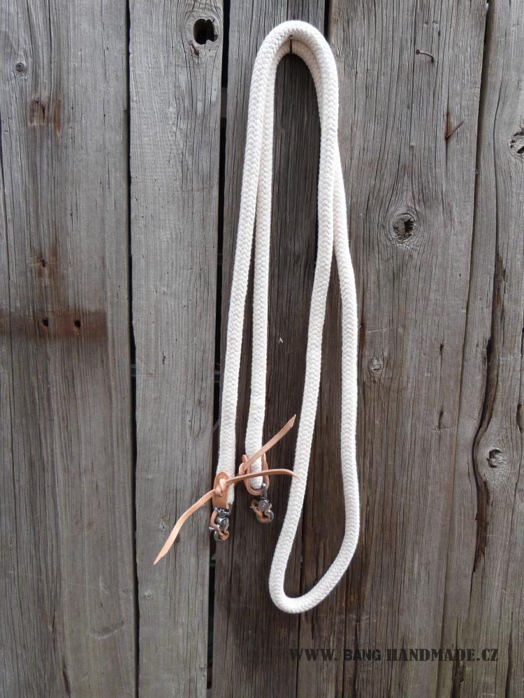 Bavlněné otěže jsou velice příjemné do ruky, ale mají oproti jachtovému lanu nižší váhu, při používání lehce pruží. Tyto otěže ocení všichni co mají rádi přírodní materiály. Při zašpinění můžete otěže vyprat ve vlažné vodě s pracím práškem. Pozor na karabiny, příliš je ve vodě nemáchejte. Snažte se vyprat pouze lano. Karabiny doporučujeme alespoň jednou do roka promazat olejem. Kožené koncovky můžete namazat občas balzámem na kůži UNIVERSAL.