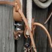 Otěže jsou zakončeny zpětným zápletem lana, tím vzniknou těžší konce, které jsou užitečným pomocníkem při jízdě na koni. Kožené koncovky na krabiny jsou vyrobeny ze silné pevné kůže. Karabinky mají malé kůžičky, které zabraňují cinkání karabinek o udidla. Koncový řemínek je vyrobený z kvalitní silné kůže "politan", která má dlouhou životnost s minimální údržbou.