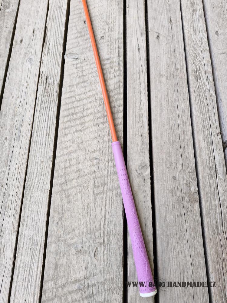 Bič standard 120cm - oranžový, fialové držátko, přírodní koncovka