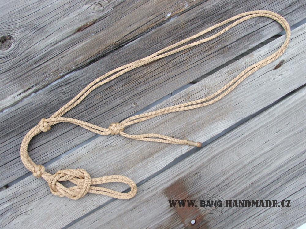 Fiador - šikovná pomůcka k vyvázání bosalu za krk koně. Možno vodit koníka bez nebezpečí strhnutí bosalu při couvání. Fiador vytvoří společně s bosalem kompletní ohlávku na hlavě Vašeho koníka. Návod na uvázání na bosal zašleme společně s výrobkem.