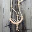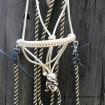 Ohlávka je vyrobena z kvalitního jachtového lana, které se nevytahuje. Nánosník je zpevněn koženým opletem pro snažší manipulaci s koníkem.