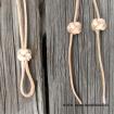 Můžete si vybrat ze dvou zakončení - s jedním uzlíkem, nebo dvěmi. Posunovací část, kterou řemínek dotáhnete je z kvalitního kusu kůže. stejně tak jako celý řemínek.