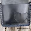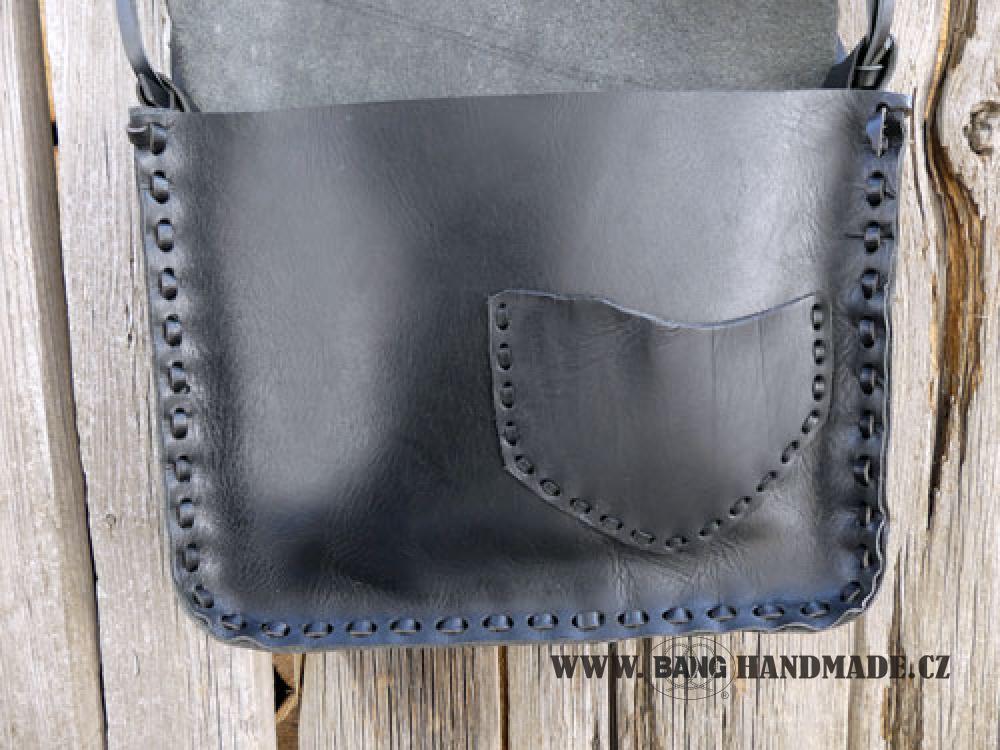 Originální kožená kabela je vyrobena z kusů kůže, sešívaná řemínky. Výrobek neobsahuje plastové, nebo kovové předměty. Kabelka má jednu hlavní kapsu a u zadní strany kabely je ještě jedna jednoduchá přepážka na oddělení papírů nebo dokladů.