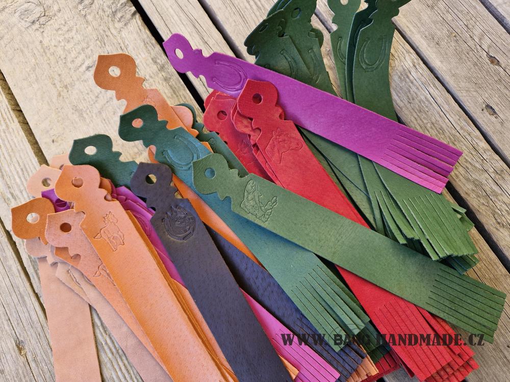 Originální kožená záložka do knížky. Vhodné jako dárek do školy pro děti, na tábory atd. Každá záložka je zdobena raznicí.