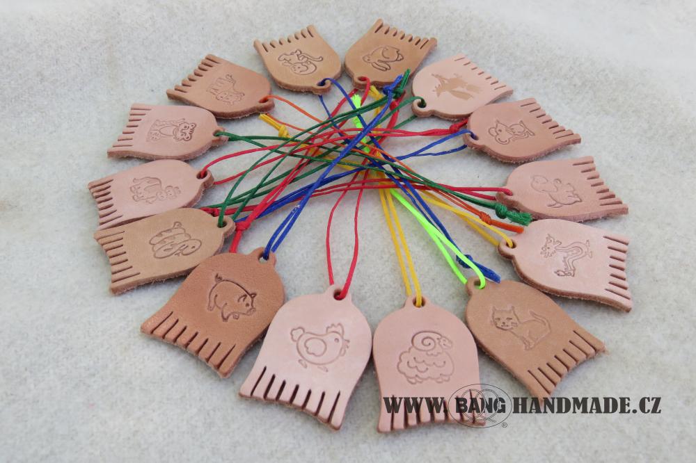Malý přívěšek je vyroben z kvalitní kůže a navlečen na barevnou pevnou sedlářskou nit. Je určen hlavně pro děti, jako upomínkový předmět na Vašem táboře, nebo kulturní akci. Lze ho jednoduše připevnit na jezdec zipu, nebo do knoflíkové dírky, k penálu, ke klíčům, atd.