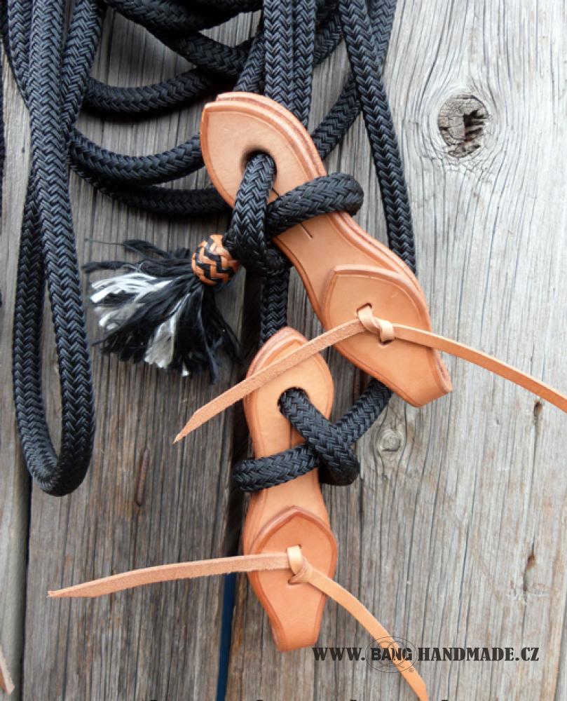 Mecate je zakončeno zpětným zápletem lana, tím vznikne těžší konec, který je užitečný pomocník při výcviku koníka. Koncový řemínek je vyrobený z kvalitní silné kůže "politan", která má dlouhou životnost s minimální údržbou.