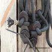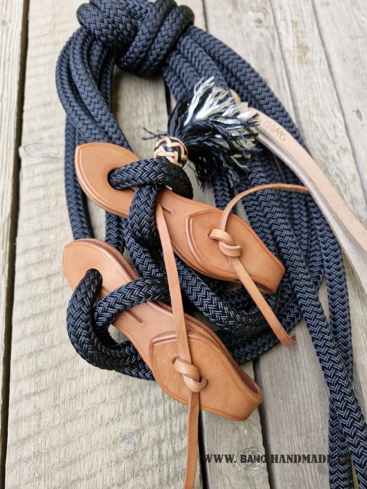 Mecate se používá jako otěže a vodítko z jednoho kusu lana dohromady. Můžete ho použít při jízdě s bosalem, slobber straps nebo s cestovní ohlávkou. Po nastavení délky otěží, Vám zbude dostatečný kus lana na vodící část. Vhodné na cestování a jako pracovní otěže.