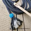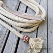 Po nastavení délky otěží, Vám zbude dostatečný kus lana na vodící část. Vhodné na cestování a jako pracovní otěže. Slabší a lehčí lano je pro jemnější a citlivější práci s koníkem.