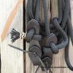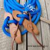 Komplet obsahuje mecate 6,5m 14mm a slobber-straps 18cm rozpínací. Na kompletu si jen nastavíce délku otěží a můžete vyrazit. Díky tomu, že jsou slobbery straps rozpínací nemusíte celé lano provlékat slintáky. Pouze je zorvážete, nasadíte do udidela můžete vyrazit.