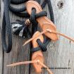 Mecate je zakončeno zpětným zápletem lana, tím vznikne těžší konec, který je užitečný pomocník při výcviku koníka. Koncový řemínek je vyrobený z kvalitní silné kůže "politan", která má dlouhou životnost s minimální údržbou.