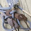 Mecate se používá jako otěže a vodítko z jednoho kusu lana dohromady. Můžete ho použít při jízdě s bosalem, slobber straps nebo s cestovní ohlávkou.