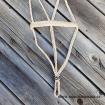 Ohlávka je bez kovovových prvků. Není na ní tedy nic, co by se dalo rozbít, jako na klasických stájovkách. Mule tape ohlávka je tak těměř nezničitelná a při minimální úržbě Vám vydrží mnoho let. Patní uzel je ozdoben turbánkem a poutka jsou sešitá jak už je u našich ohlávek zvykem. Ohlávka je nastavitelná pouze na boku.