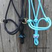 Provazová ohlávka klasik s dvěma kroužky na nose. Do kroužků na nose snadno připnete otěže a můžete vyrazit na projížďku.