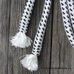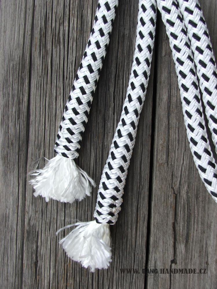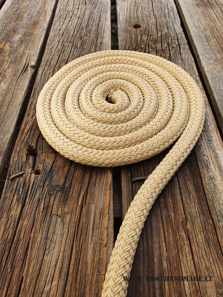 Materiál je z jachtového lana, které je osvědčené i při dlouhodobém používání. Lano netuhne, je pořád stále "živé" a ohebné, což Vám zaručuje kvalitní práci při výcviku. Při zašpinění můžete otěže vyprat ve vlažné vodě s pracím práškem.