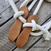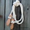 Po nastavení délky otěží, Vám zbude dostatečný kus lana na vodící část. Vhodné na cestování a jako pracovní otěže. Slabší a lehčí lano je pro jemnější a citlivější práci s koníkem.