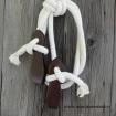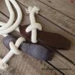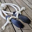 Otěže jsou zakončeny zpětným zápletem lana, tím vzniknou těžší konce, které jsou užitečným pomocníkem při výcviku koníka.