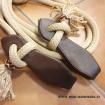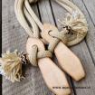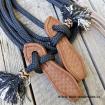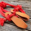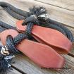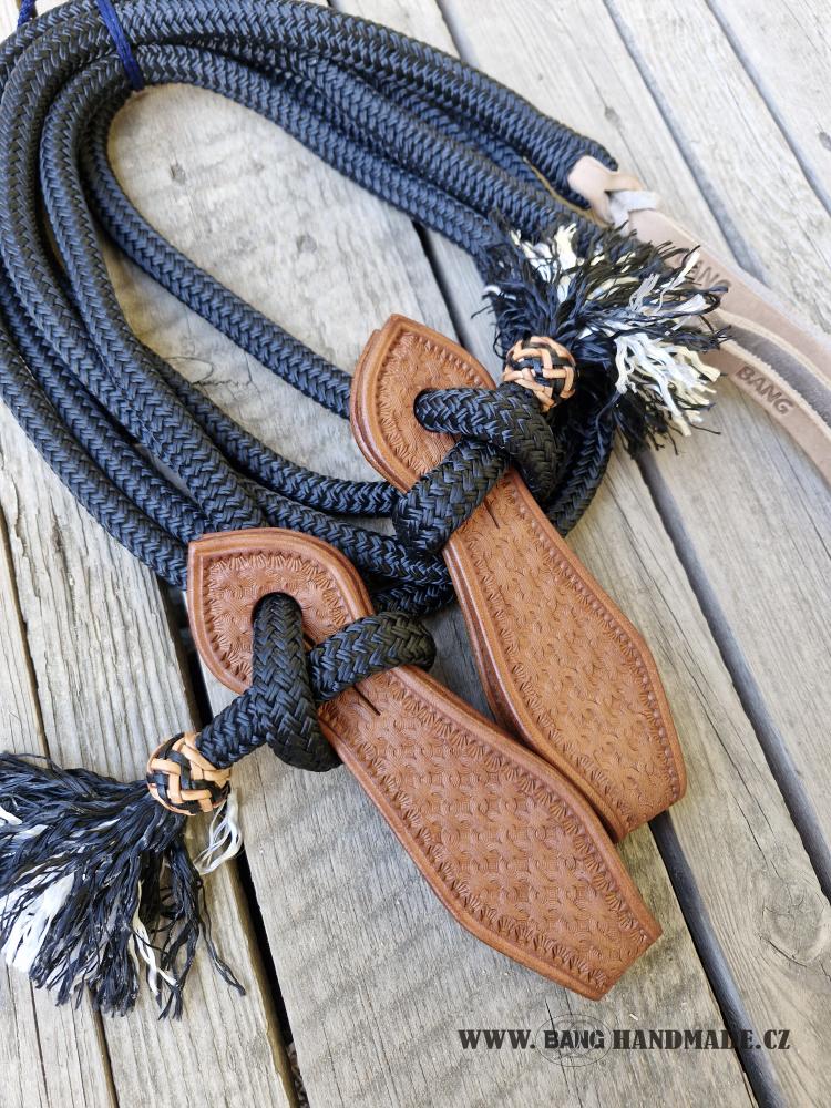 Otěže jsou zakončeny zpětným zápletem lana, tím vzniknou těžší konce, které jsou užitečným pomocníkem při výcviku koníka. Na obou koncích je lano prošito a ukončeno malým střapečkem. Na obou stranách otěží jsou napleteny kožené uzlíky.
