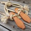 Materiál je z jachtového lana, které je osvědčené i při dlouhodobém používání. Lano netuhne, je pořád stále "živé" a ohebné, což Vám zaručuje kvalitní práci při výcviku. Při zašpinění můžete otěže vyprat ve vlažné vodě s pracím práškem.