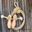 Materiál je z jachtového lana, které je osvědčené i při dlouhodobém používání. Lano netuhne, je pořád stále "živé" a ohebné, což Vám zaručuje kvalitní práci při výcviku. Při zašpinění můžete otěže vyprat ve vlažné vodě s pracím práškem.