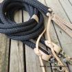 Otěže jsou zakončeny zpětným zápletem lana, tím vzniknou těžší konce, které jsou užitečným pomocníkem při výcviku koníka.