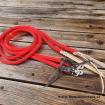 Materiál je z jachtového lana, které je osvědčené i při dlouhodobém používání. Lano netuhne, je pořád stále "živé" a ohebné, což Vám zaručuje kvalitní práci při výcviku. Při zašpinění můžete otěže vyprat ve vlažné vodě s pracím práškem. Karabinky je vhodné alespoň jednou za rok promazat olejem.