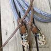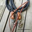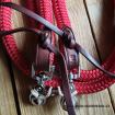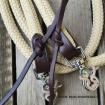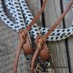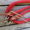 Kvalitní provazové otěže standardní délky 2,8m. Kůže v karabinkách tlumí tření mezi karabinkou a udidlem.