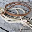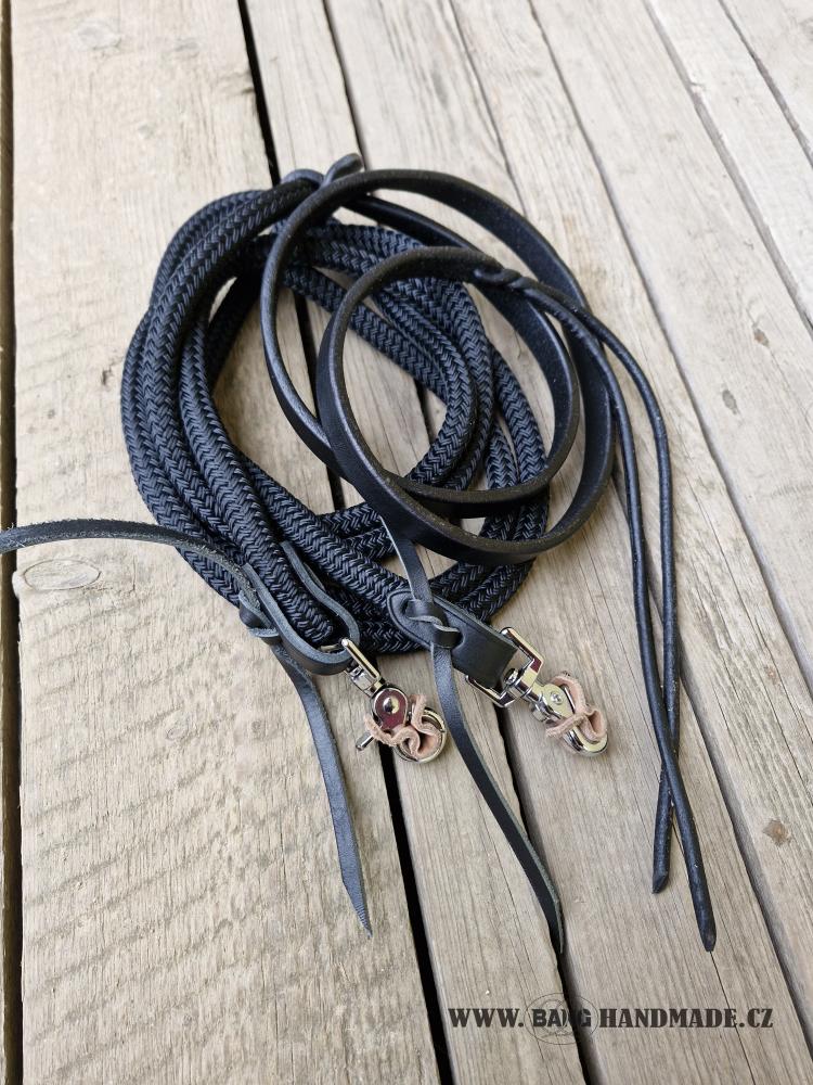 Kvalitní provazové otěže standardní délky 2,8m s koženým romalem, který je vyroben z kvalitního hovězího kruponu síly 5-5,5mm.