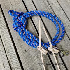 Provazové otěže 2,8m 14mm MODRÉ S ORANŽOVOU TEČKOU