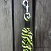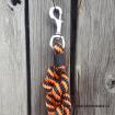 Vodítko je vyrobeno z kvalitního materiálu příjemného do ruky. Má pevnou, dobře připevněnou karabinu. Není zde kovová svorka, ke které by Vám v zimě přimrzaly prsty ani plastová spona, která praskne když na ni stoupnete Vy nebo Váš kůň.