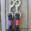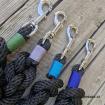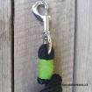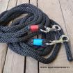 Vodítko je vyrobeno z kvalitního materiálu příjemného do ruky. Má pevnou, dobře připevněnou karabinu. Není zde kovová svorka, ke které by Vám v zimě přimrzaly prsty ani plastová spona, která praskne když na ni stoupnete Vy nebo Váš kůň.