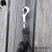 Vodítko je vyrobeno z kvalitního materiálu příjemného do ruky. Má pevnou, dobře připevněnou karabinu. Není zde kovová svorka, ke které by Vám v zimě přimrzaly prsty ani plastová spona, která praskne když na ni stoupnete Vy nebo Váš kůň.